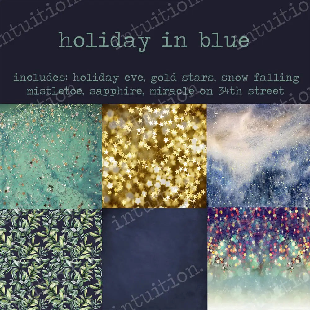 holiday in blue pack includes: holiday eve, gold star, snow falling, mistletoe, sapphire, miracle on 34th street