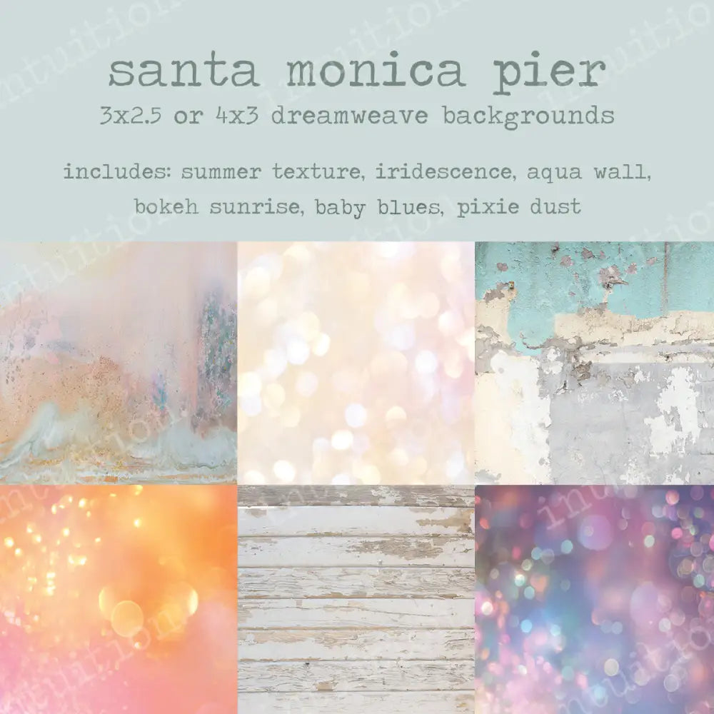 santa monica pier includes: summer texture, iridescence, aqua wall, bokeh sunrise, baby blues, pixie dust.
